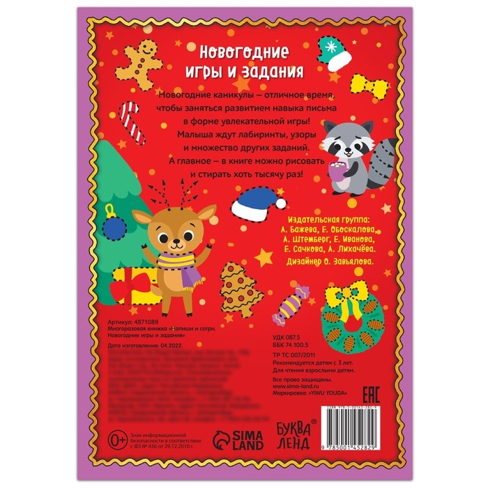 Многоразовая книжка «Напиши и сотри. Новогодние игры и задания», 12 стр.