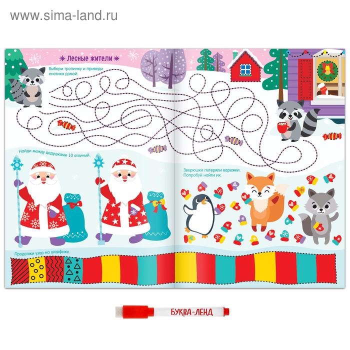 Многоразовая книга с маркером «Пиши-стирай. Новогодние задания», 12 стр.