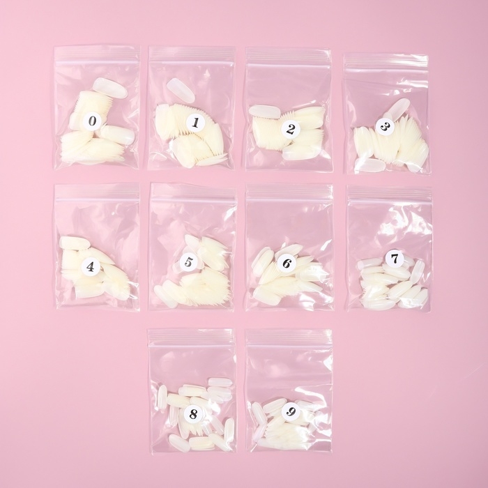 Типсы для наращивания ногтей, 500 шт, форма овал, в пакете, 10 размеров, цвет молочный