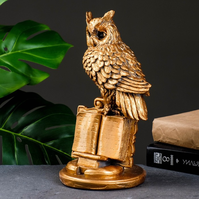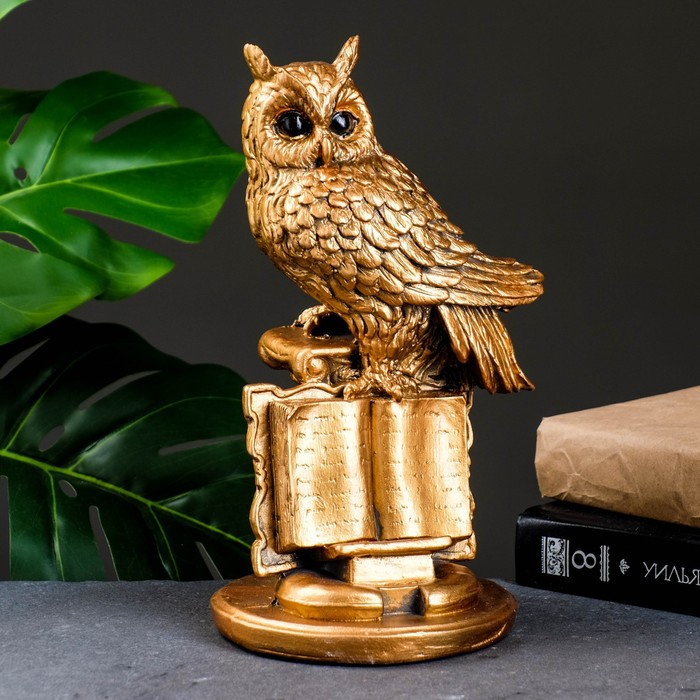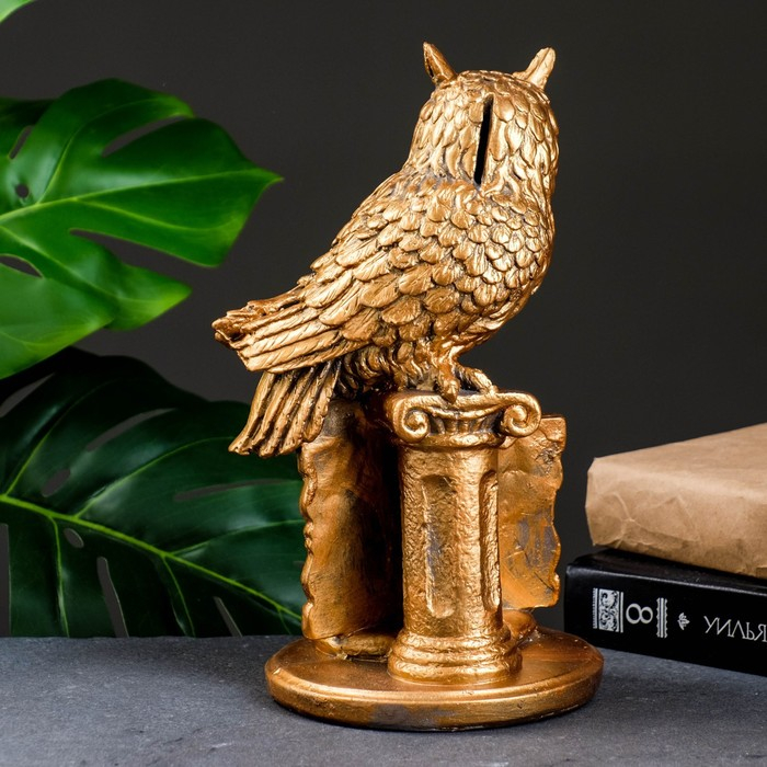 Копилка "Сова в книге малая" бронза, 14х17х27см