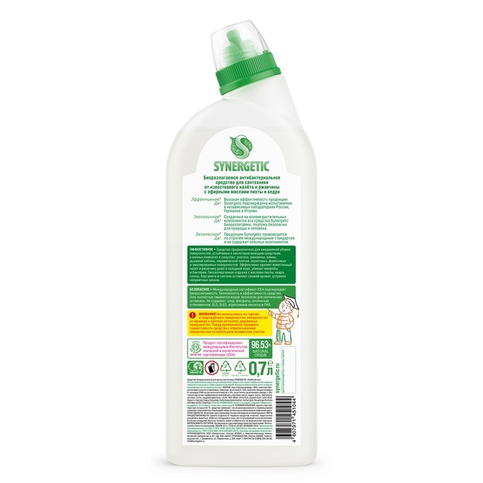 Чистящее средство Synergetic "Пихта и кедр", гель, для сантехники, 700 мл
