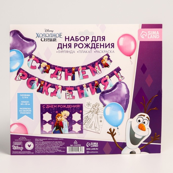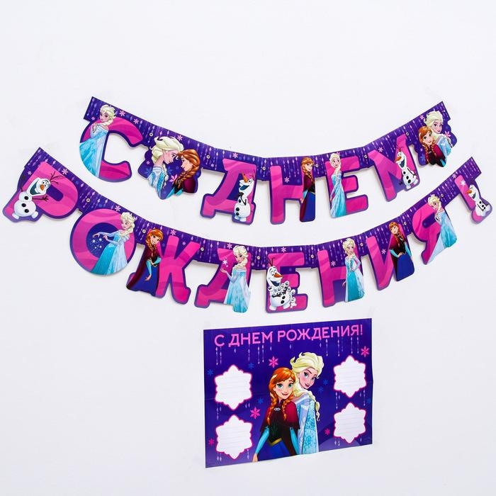 Гирлянда на люверсах с плакатом "С Днем Рождения", длина 210 см, Холодное сердце