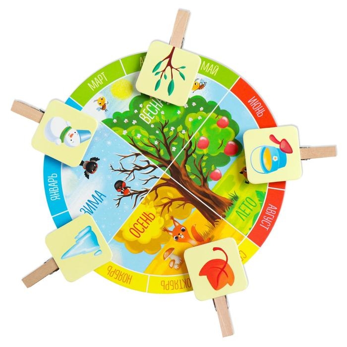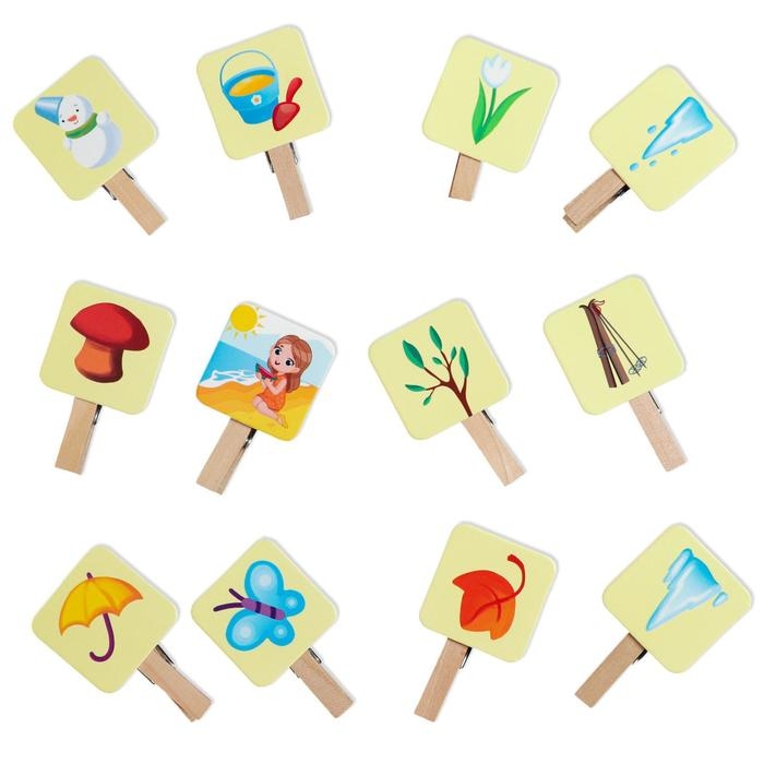 Благодаря этой игре ребёнок познакомится с временами года и узнает, чем они отличаются друг от друга. А помогут ему в этом прищепки!
