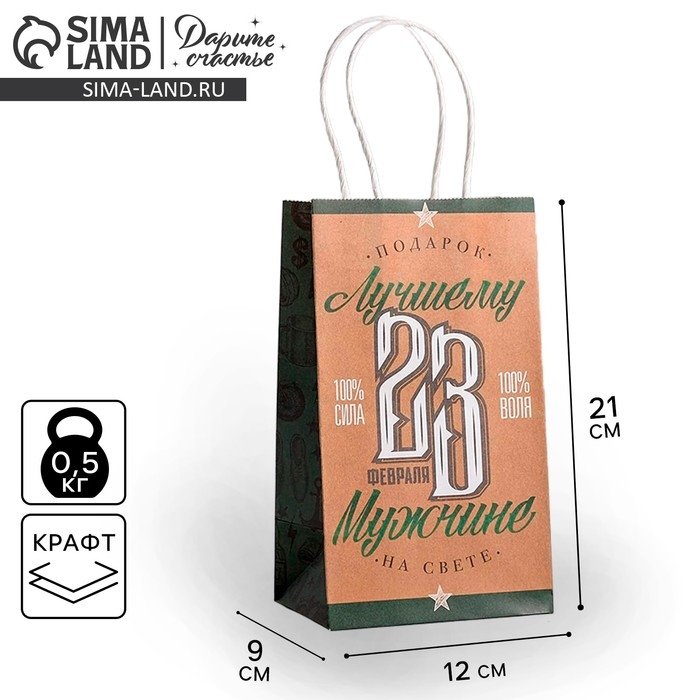 Пакет подарочный крафт, упаковка, «Лучшему мужчине», 12 х 21 х 9 см