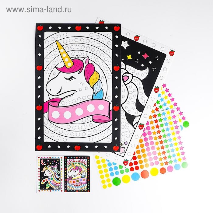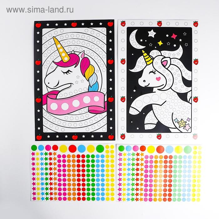 Аппликация наклейками «Единорог», 2 картинки-основы, 2 листа наклеек