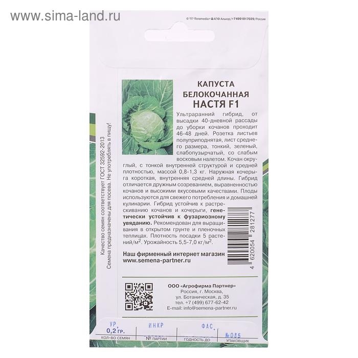 Семена Капуста белокочанная "Настя", F1, ультраскороспелая, 0, 2 г