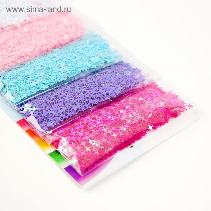 В наборе есть блёстки пяти цветов в индивидуальных пакетиках.