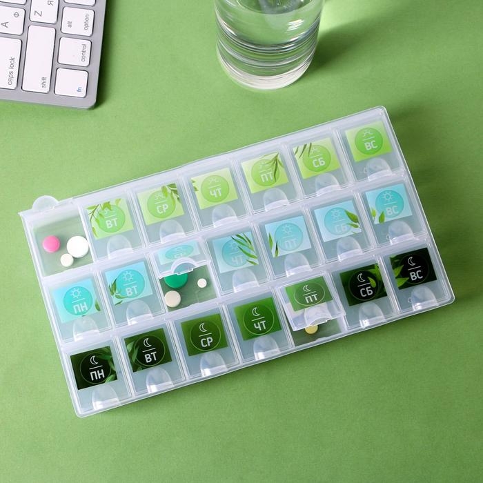 Таблетница органайзер «Растения», 21 секция, русские буквы, 21,5 х 12 см.
