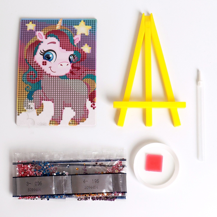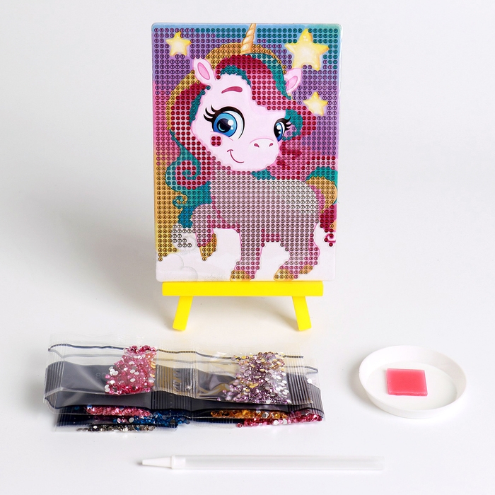 Алмазная мозаика с частичным заполнением на подставке для детей «Весёлый единорог»