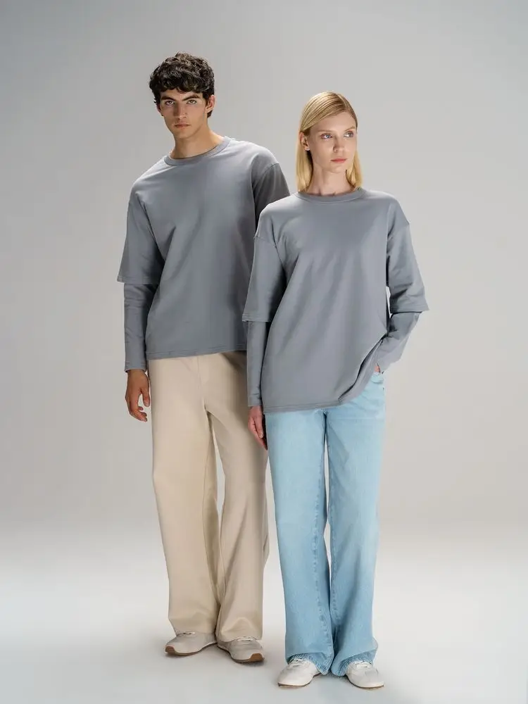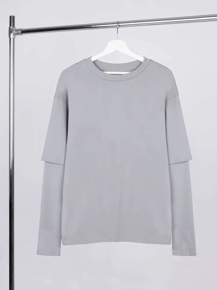 Футболка оверсайз с двойным рукавом Kosmos, светло-серая, размер XS/S