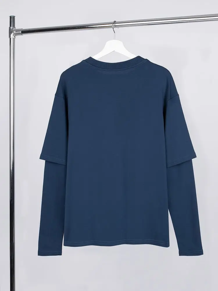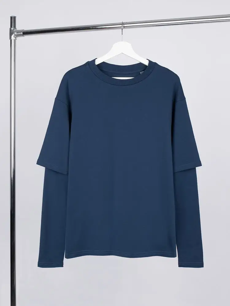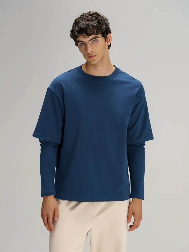 Футболка оверсайз с двойным рукавом Kosmos, темно-синяя, размер XS/S