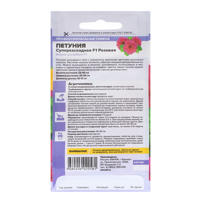 Семена цветов Петуния Суперкаскадная, розовая, F1, 7 шт