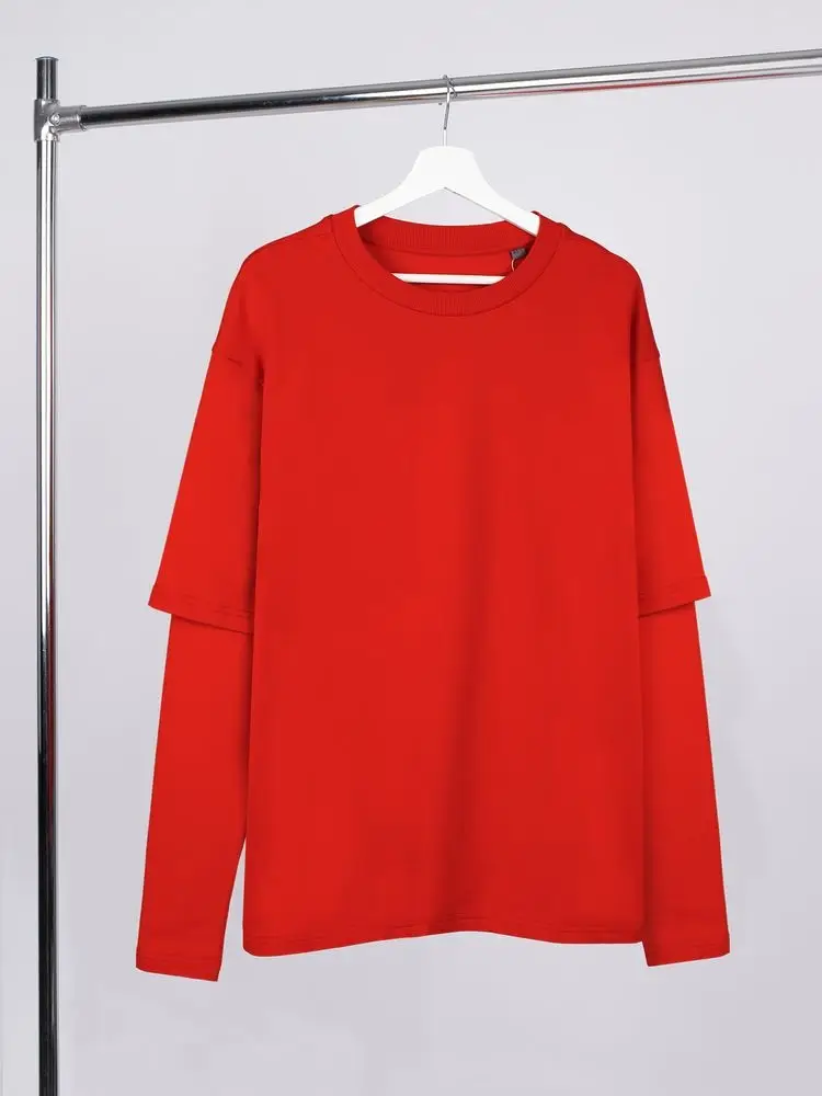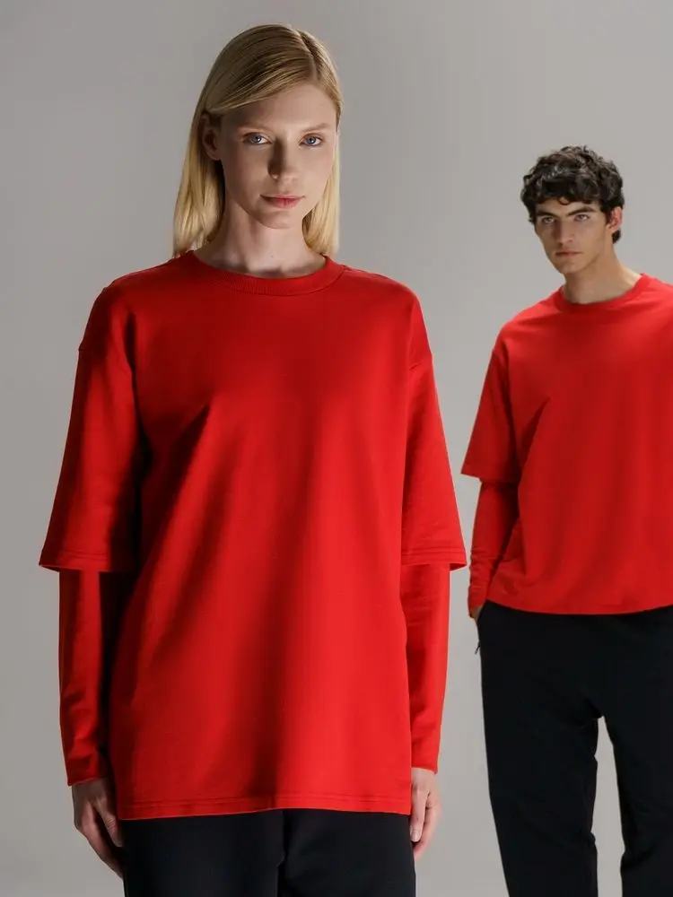 Футболка оверсайз с двойным рукавом Kosmos, красная, размер XS/S