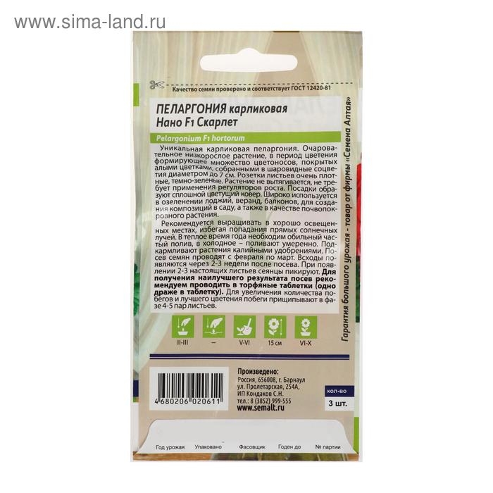 Семена цветов Пеларгония "Нано", "Скарлет", 3 шт