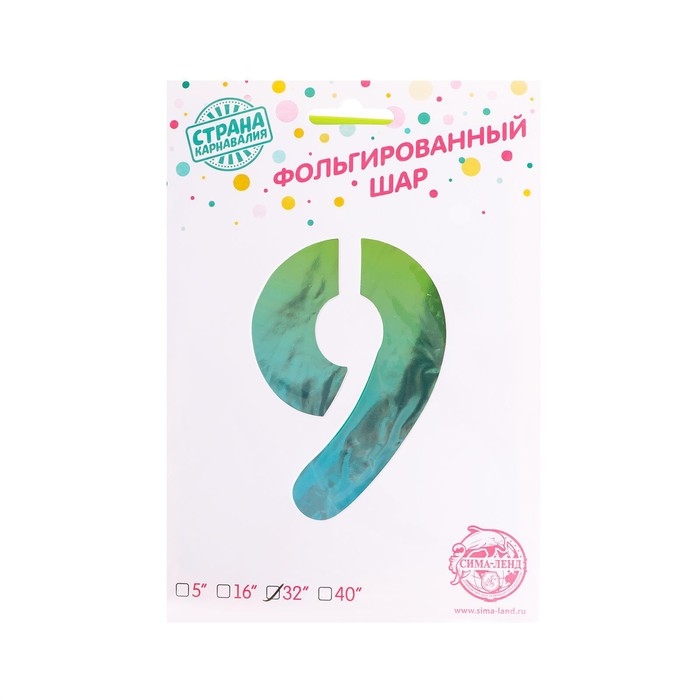 Шар фольгированный 32" «Цифра 9», на подставке, радужный