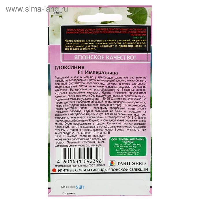 Семена цветов Глоксиния "Императрица", 4 шт.