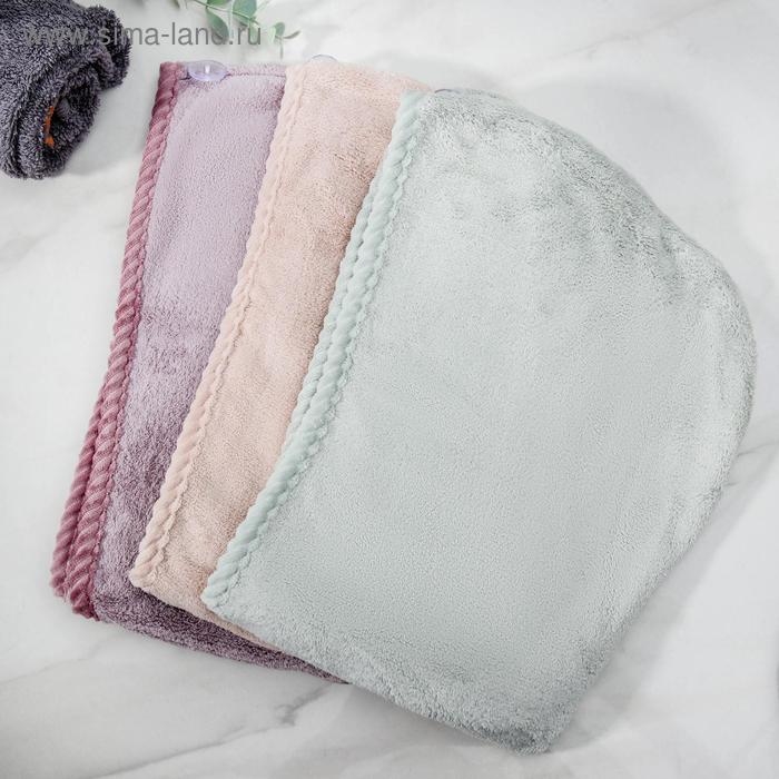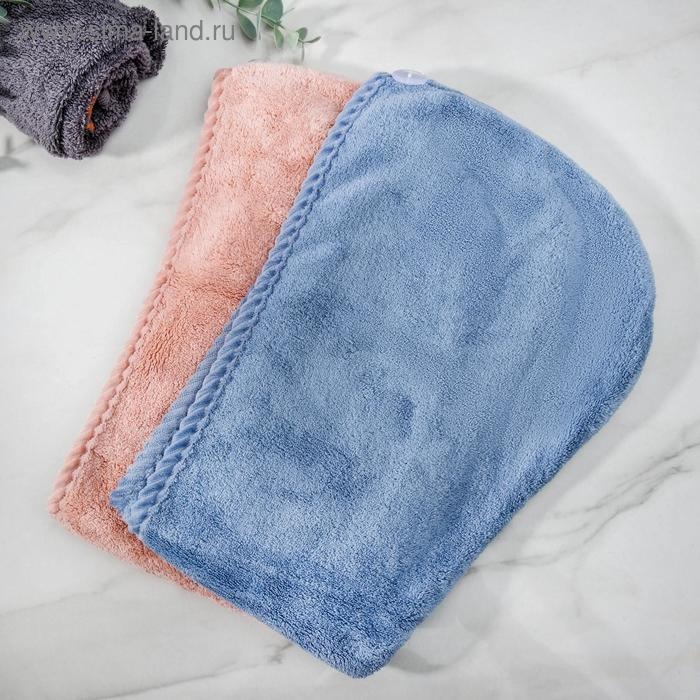 Чалма для сушки волос Доляна, микрофибра, с пуговкой, цвет розовый