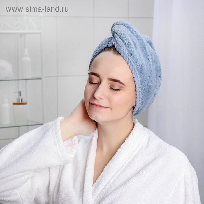 Чалма для сушки волос Доляна, микрофибра, цвет синий