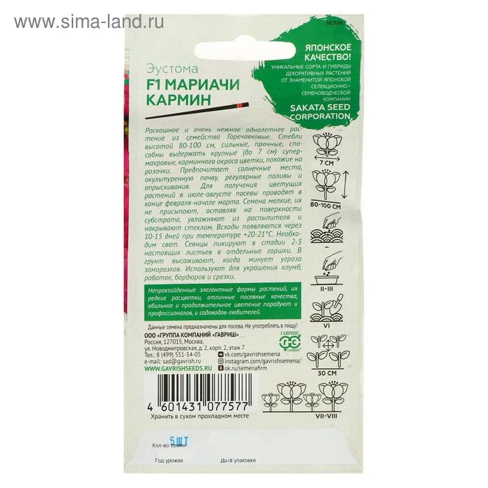 Семена цветов Эустома "Мариачи кармин", F1, махровая, 4 шт