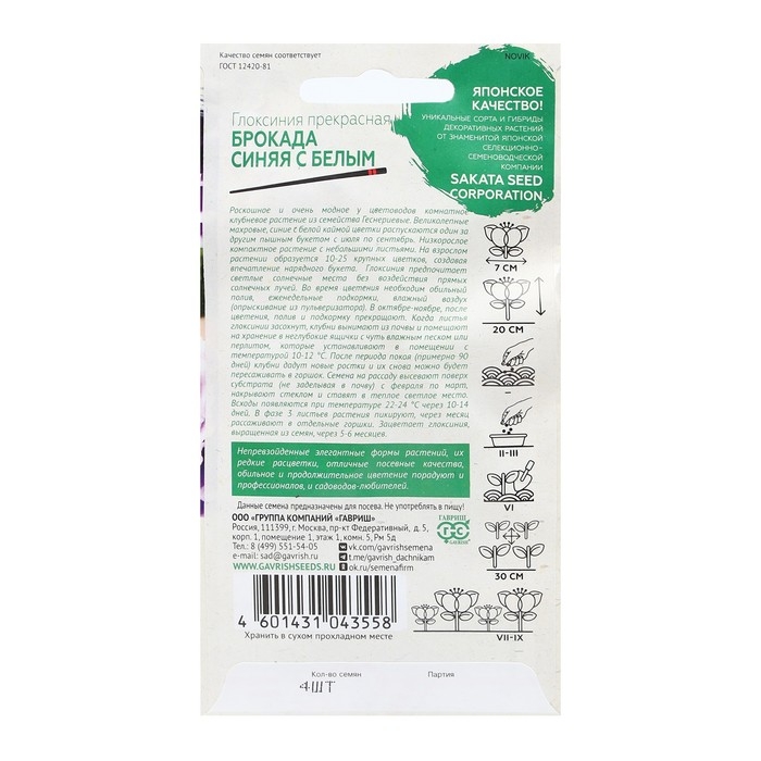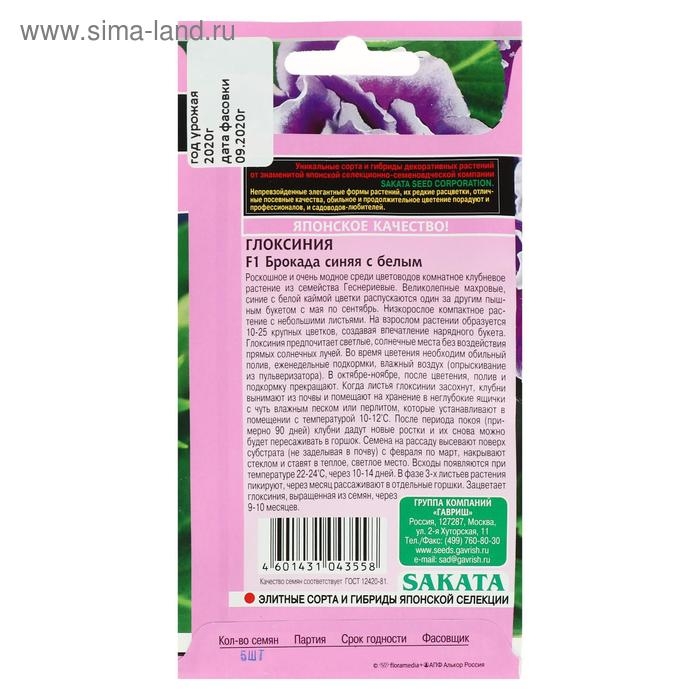 Семена цветов Глоксиния "Брокада синяя с белым", F1, 4 шт.