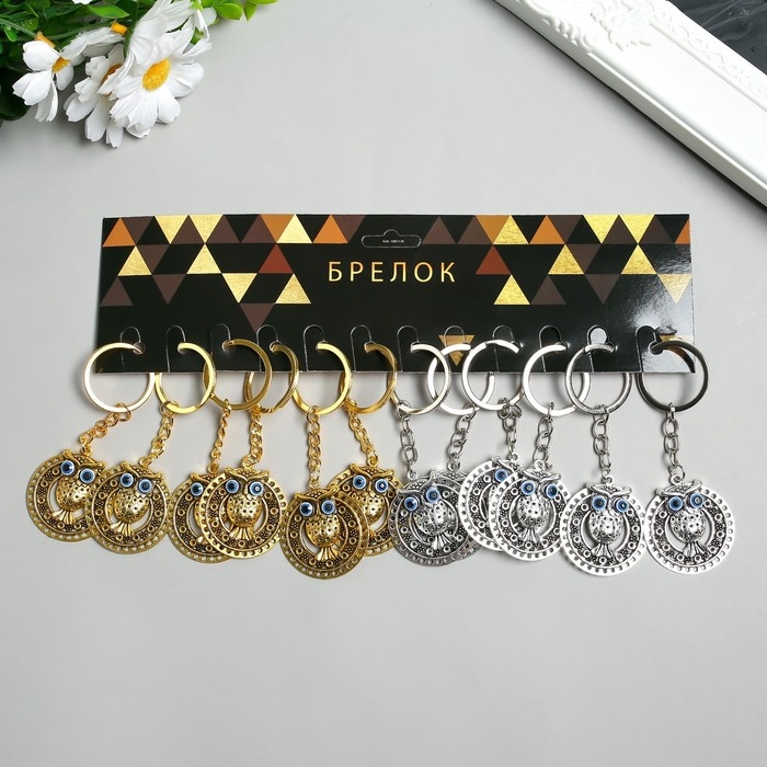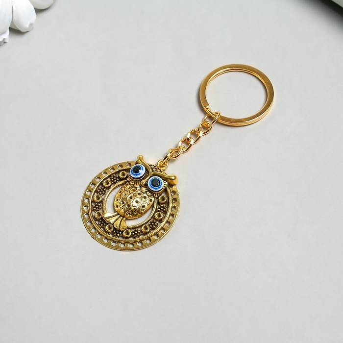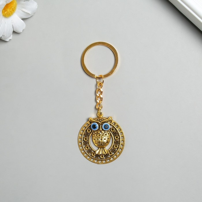 Брелок металл "Филин с глазками и ажурный круг" золото/серебро 3,8х3,8 см