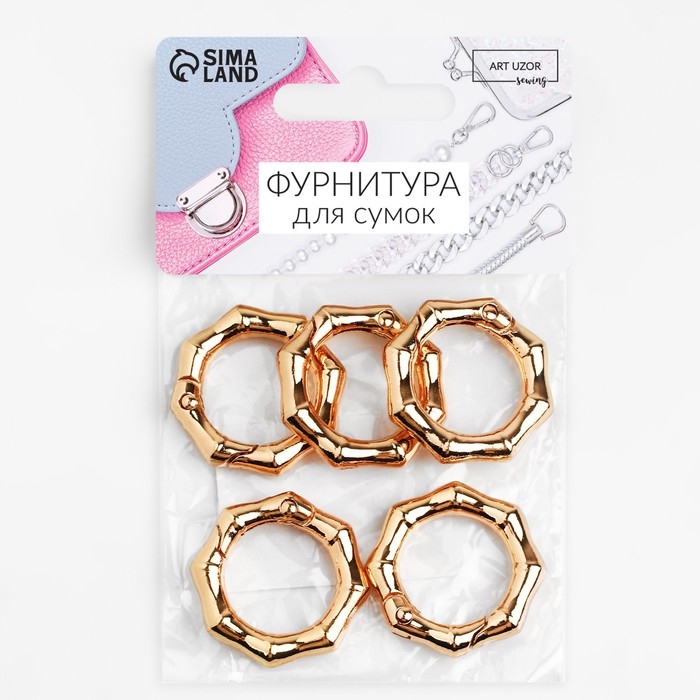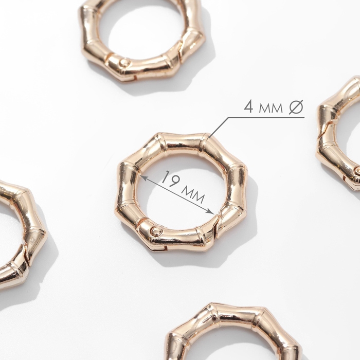 Кольцо-карабин «Бамбук», d = 19/29 мм, толщина - 5 мм, 5 шт, цвет золотой