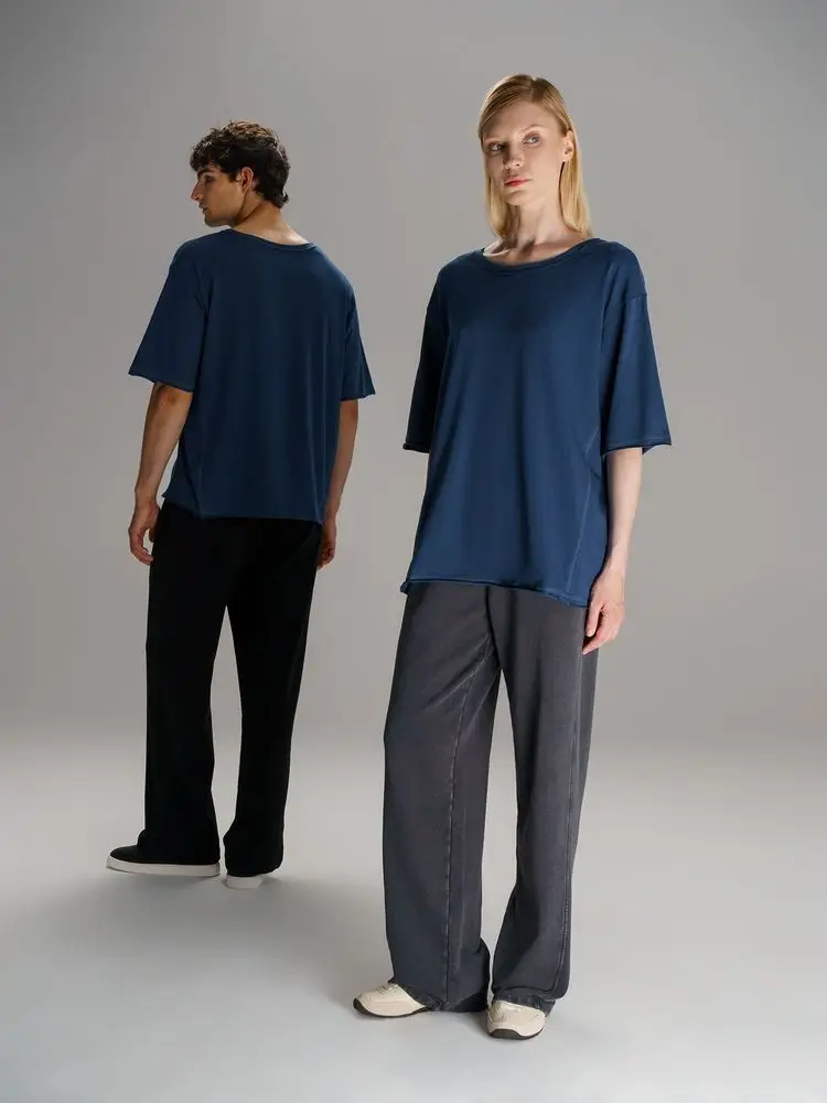 Футболка оверсайз унисекс Vozduh, темно-синяя, размер M/L