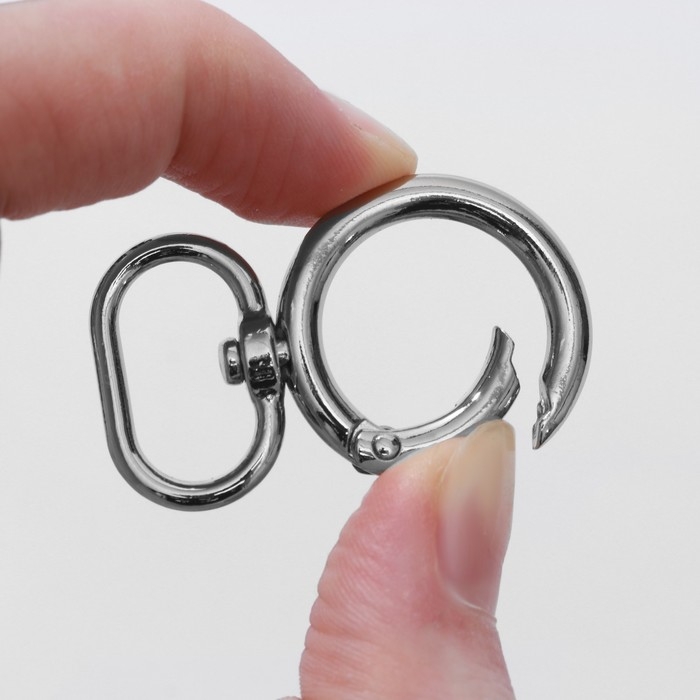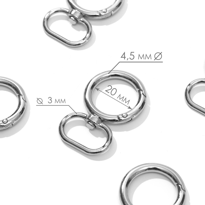 Кольцо-карабин, 43 мм, d = 27/19 мм, толщина - 4,5 мм, с креплением 20 × 3 мм, 5 шт, цвет серебряный