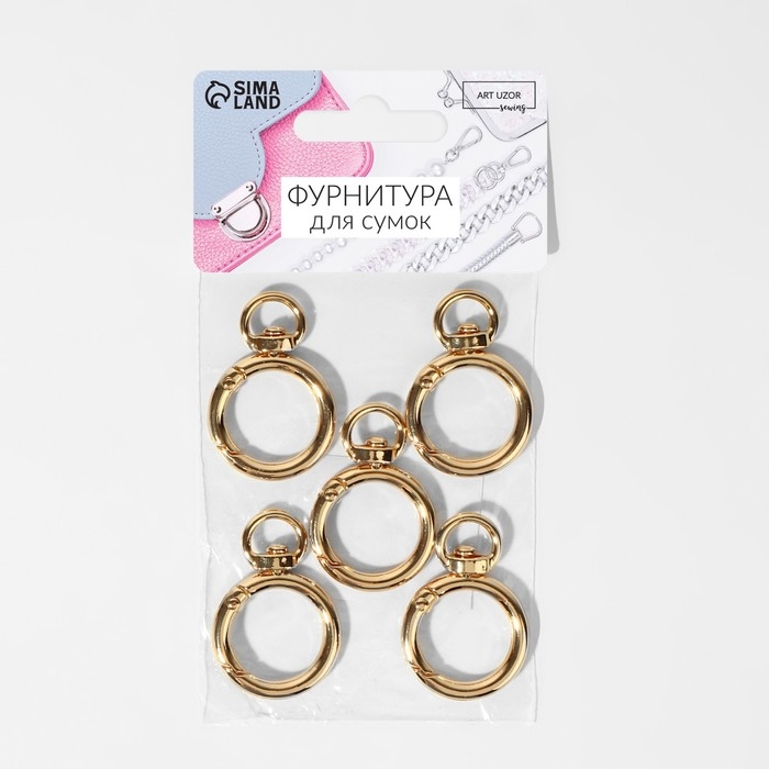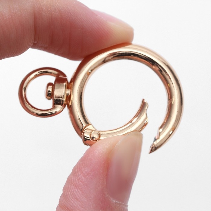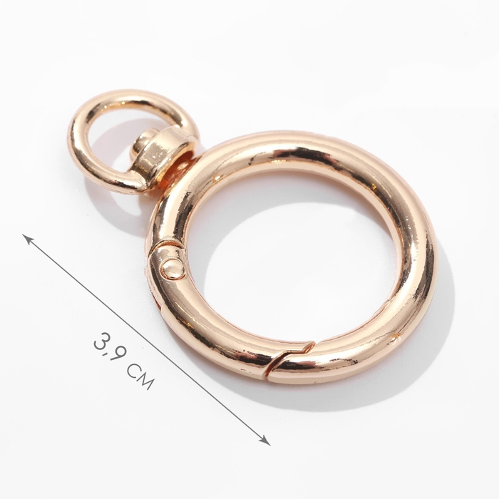 Кольцо-карабин, 39 мм, d = 27/19 мм, толщина - 4 мм, с креплением 9 × 2,2 мм, 5 шт, цвет золотой