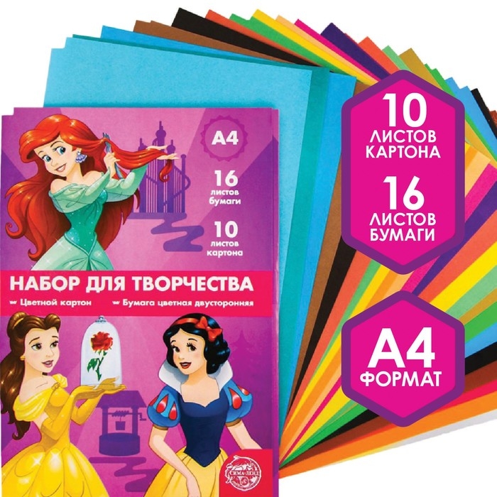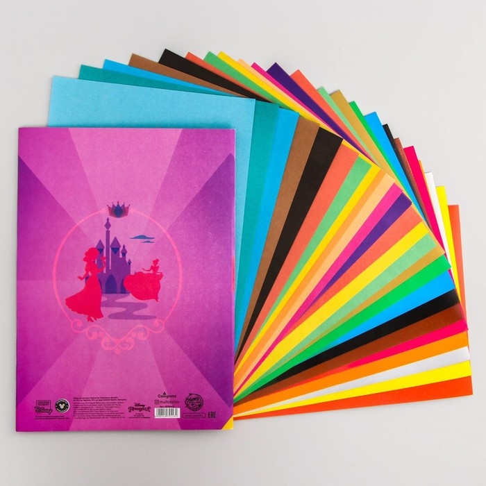 Набор "Принцессы" А4: 10л цветного одностороннего картона + 16л цветной двусторонней бумаги