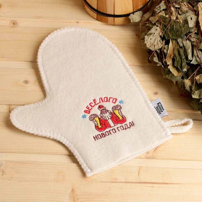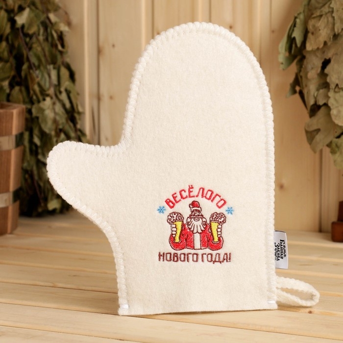 Рукавица для бани с шелкографией "Весёлого Нового года!"