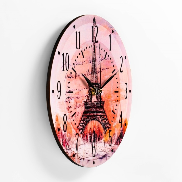 Настенные часы - это отличный способ добавить в интерьер помещения индивидуальность и уют. Они могут стать ярким акцентом в комнате или же дополнением к общей концепции дизайна. Настенные часы могут иметь различные формы и размеры, а также быть выполнены из разных материалов. Эти круглые часы имеют диаметр 23 см. Часы оформлены в тематике достопримечательностей Парижа и оснащены кварцевым механизмом для точного отображения времени. Часы очень легкие, размещаются на стене всего на одном креплении, что делает установку простой и быстрой. Вы сможете легко прикрепить их к любой стене без необходимости использовать дополнительные инструменты или обращаться к профессионалам.