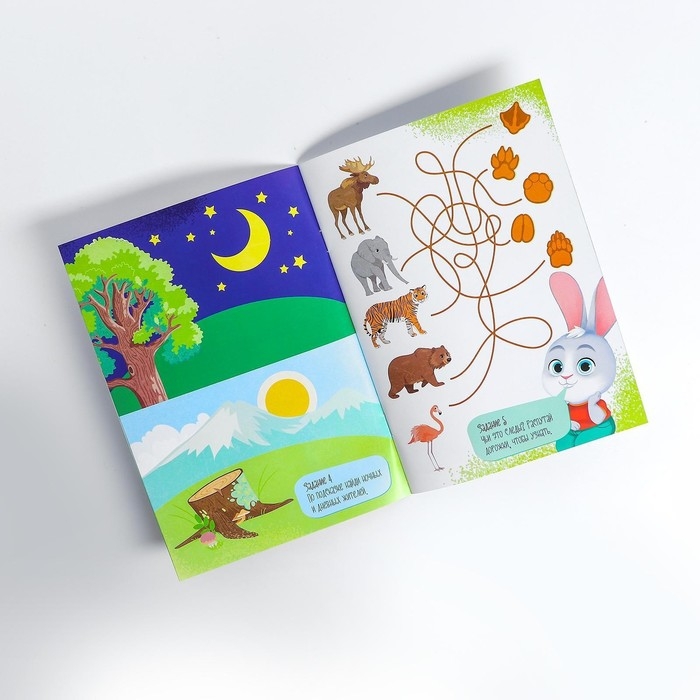 В начале проговорите малышу названия всех животных, которые изображены на поле. Затем предложите малышу подобрать к каждому зверьку его детёныша и прикрепить рядом с помощью липучки. Так же, во время игры малыша можно познакомить с местами обитаний различных животных: ферма, тропики, пустыня, лес. Расскажите интересные факты про эти места, чтобы малыш лучше усвоил информацию.В наборе: