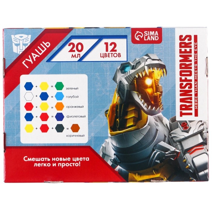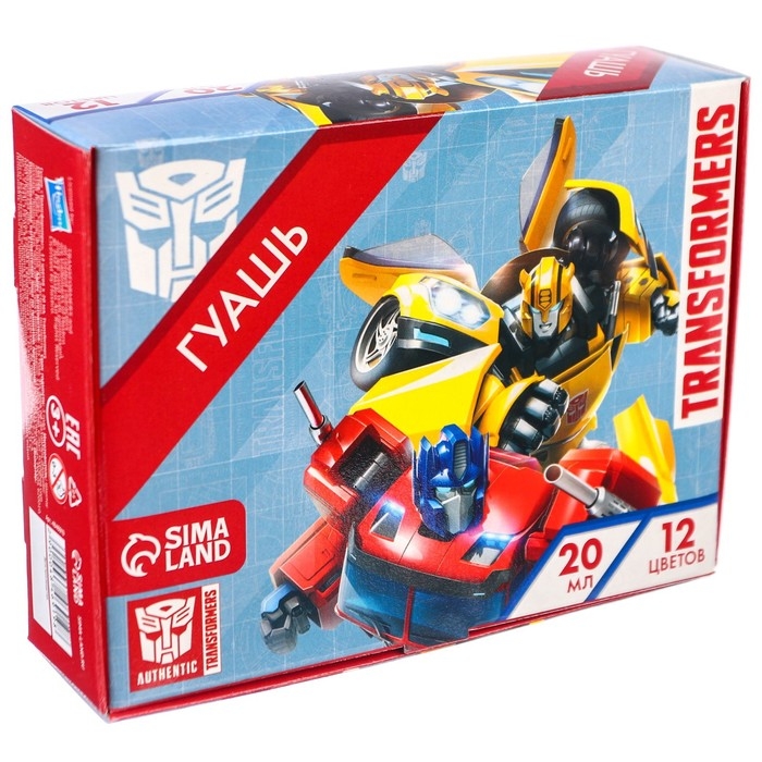 Гуашь 12 цветов по 20 мл "Трансформеры", Transformers