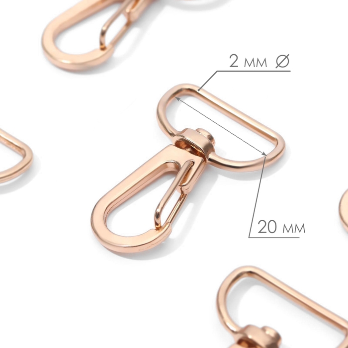 Карабин металлический, 36 × 24 мм / 20 × 2 мм, 5 шт, цвет золотой