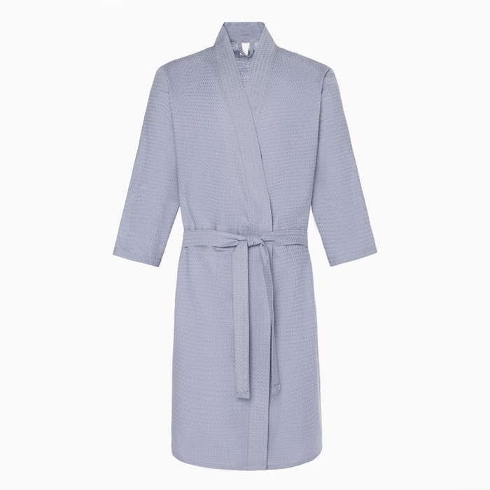 Халат вафельный мужской удлинённый Экономь и Я размер 50-52, цвет серый, 100% хлопок, 200г/м2