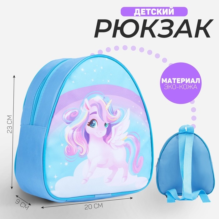 Рюкзак детский для девочки «Единорог», отдел на молнии, цвет голубой