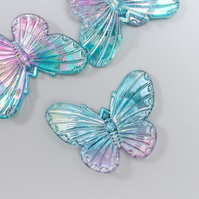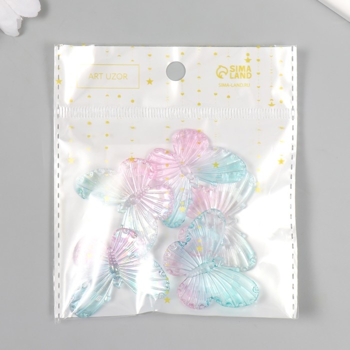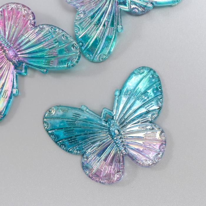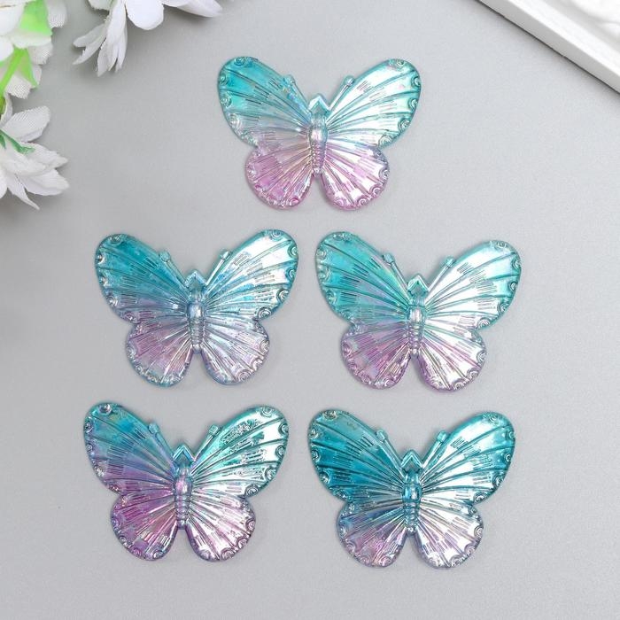 Декор для творчества пластик "Бабочки голубо-сиреневые" набор 5 шт 3,2х4,1 см