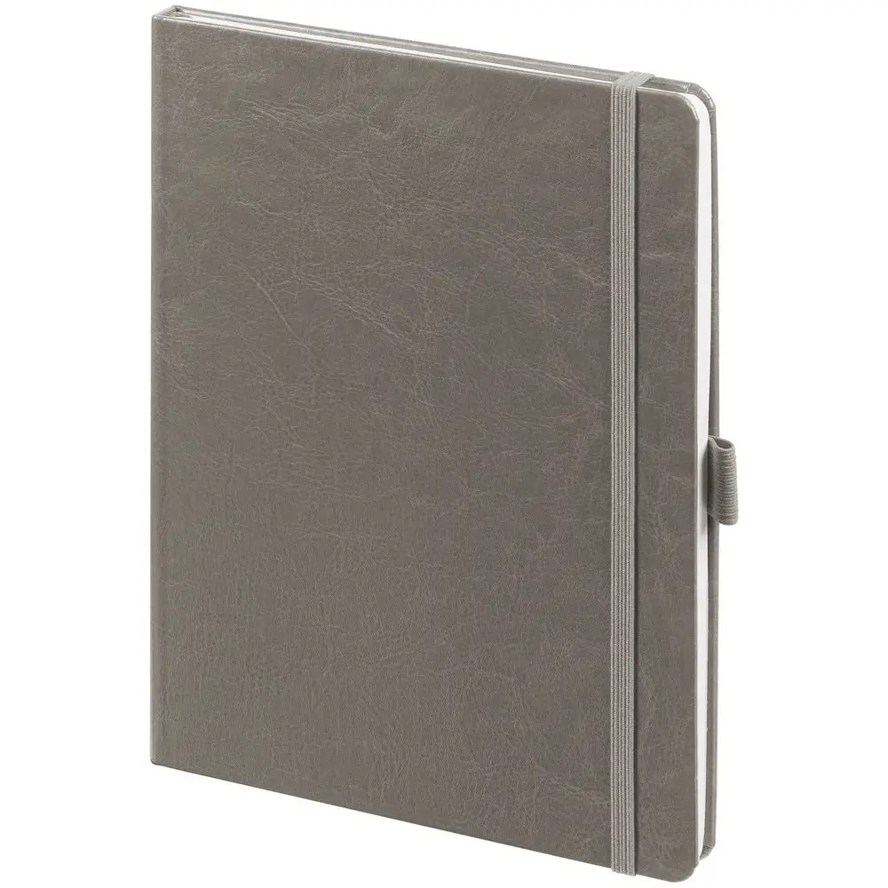 Еженедельник в твердой обложке выполнен из материала Vintage, серый СС, дополнен резинкой, петлей для ручки и ляссе серого цвета.