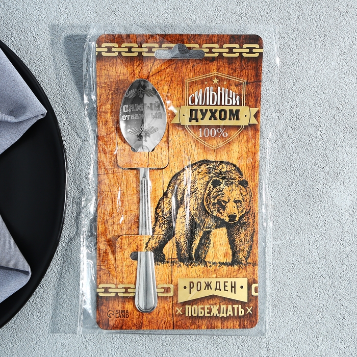 Ложка чайная с гравировкой «Сильный духом», на подарочной открытке, 3 х 14 см.