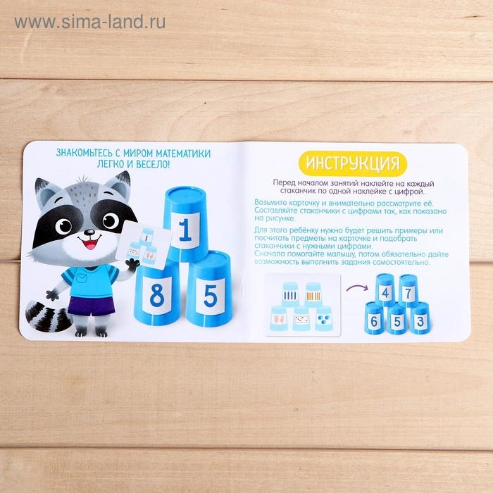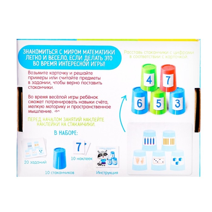 - Расставляйте стаканчики с цифрами в соответствии с карточкой.