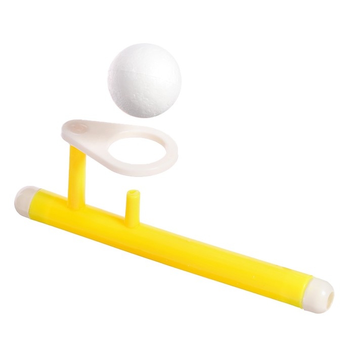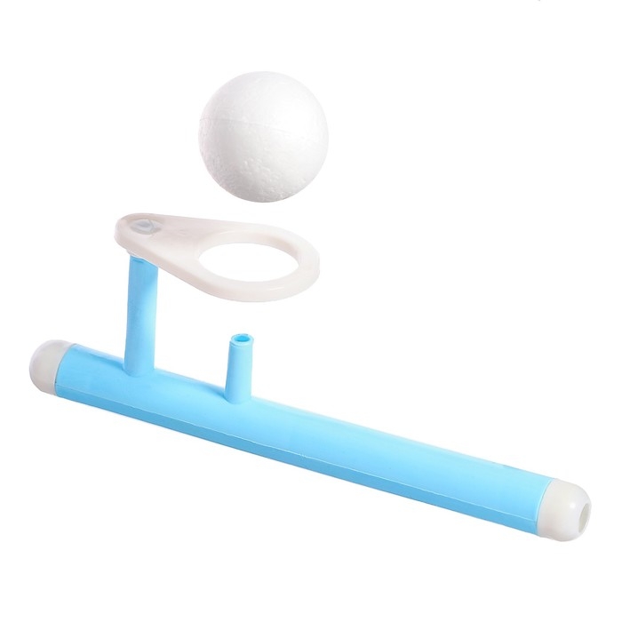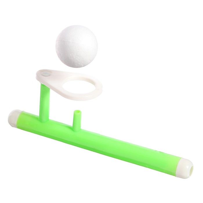 - Положите шарик в отверстие и плавно подуйте в трубочку так, чтобы шарик парил в воздухе.