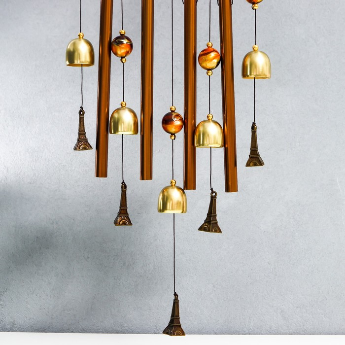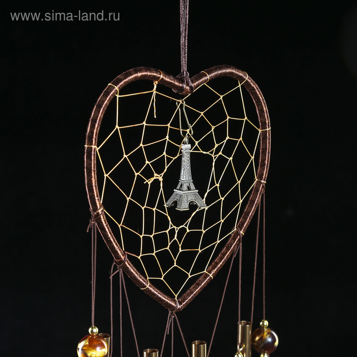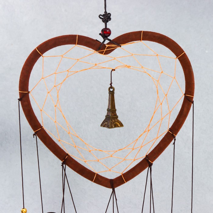 Музыка ветра металл "Сердце с Эйфелевой башней" 4 трубки 5 колокольчиков d=17 см длина 65см