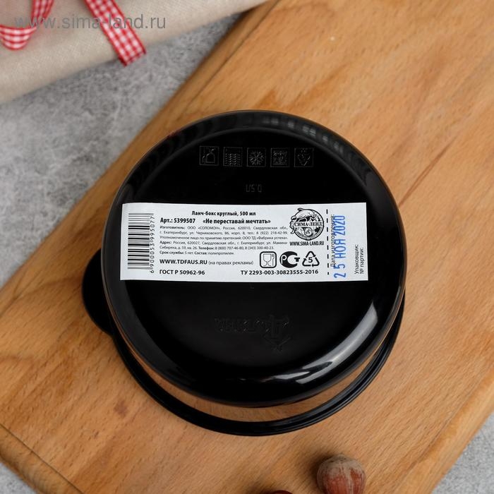 Ланч-бокс круглый «Не переставай мечтать», 500 мл