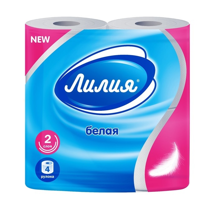 Туалетная бумага «Лилия», 2 слоя, 4 рулона, белый цвет