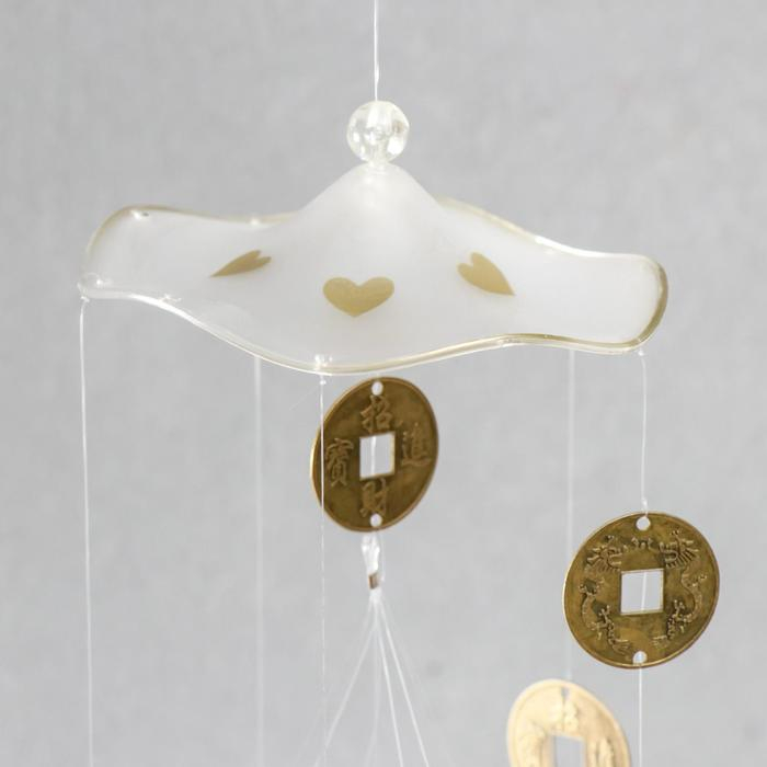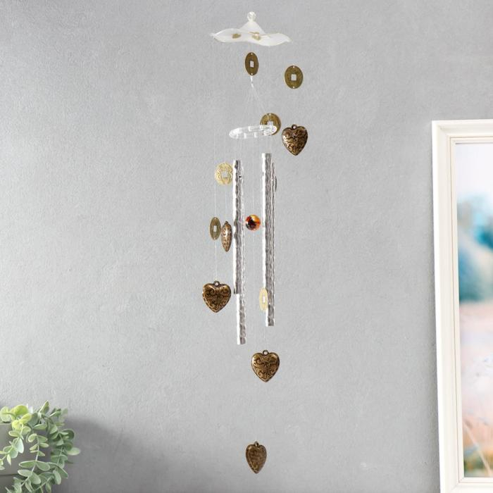 Музыка ветра пластик. металл "Сердечки и китайские монеты" 4 трубки 70 см