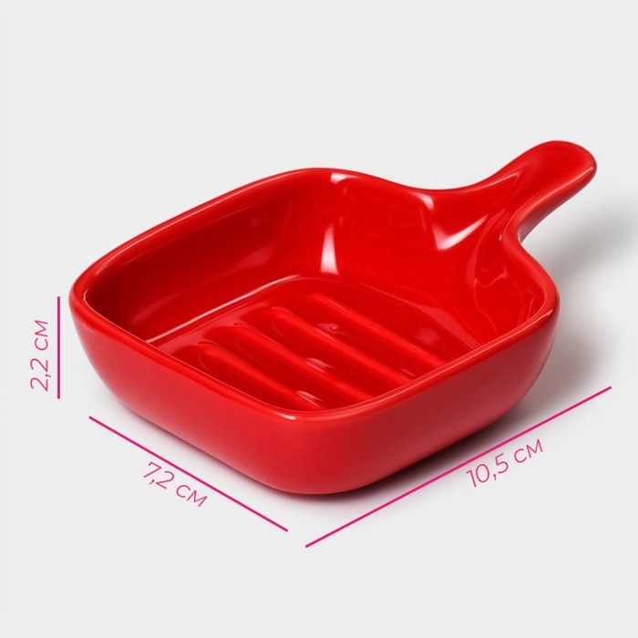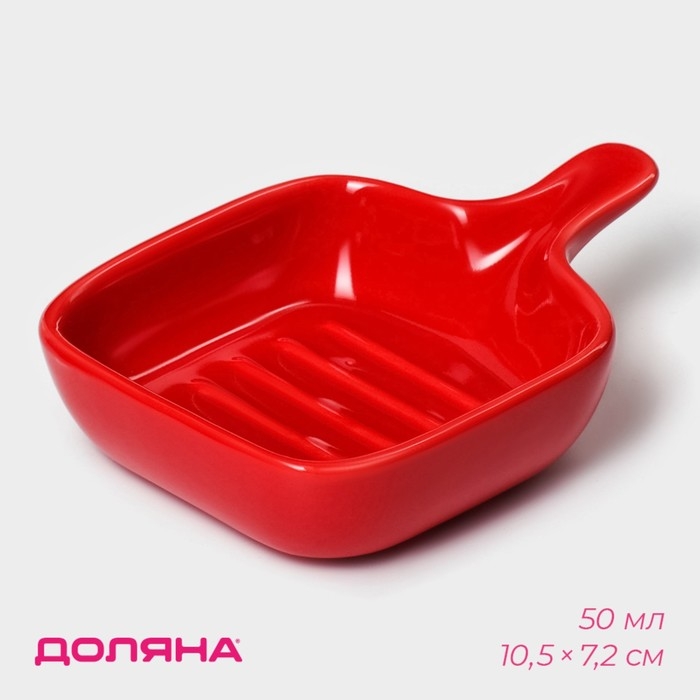 Соусник керамический с ручкой Доляна «Сковорода», 50 мл, 10,5×7,2 см, цвет красный