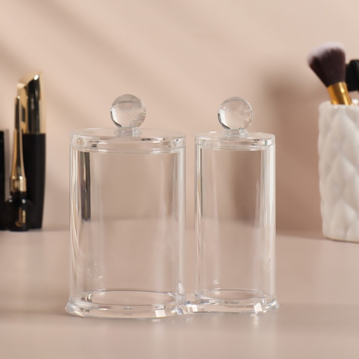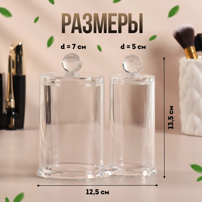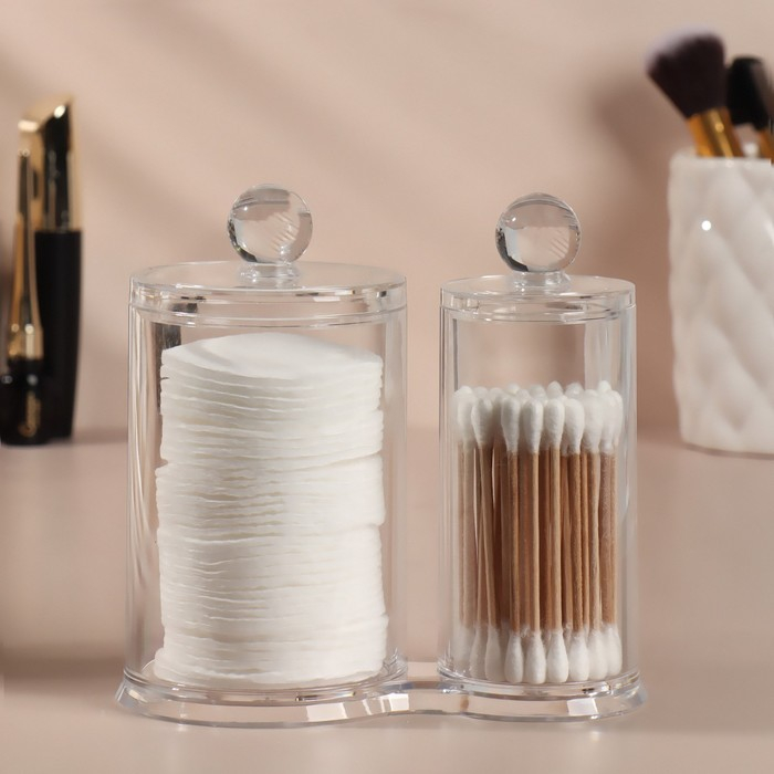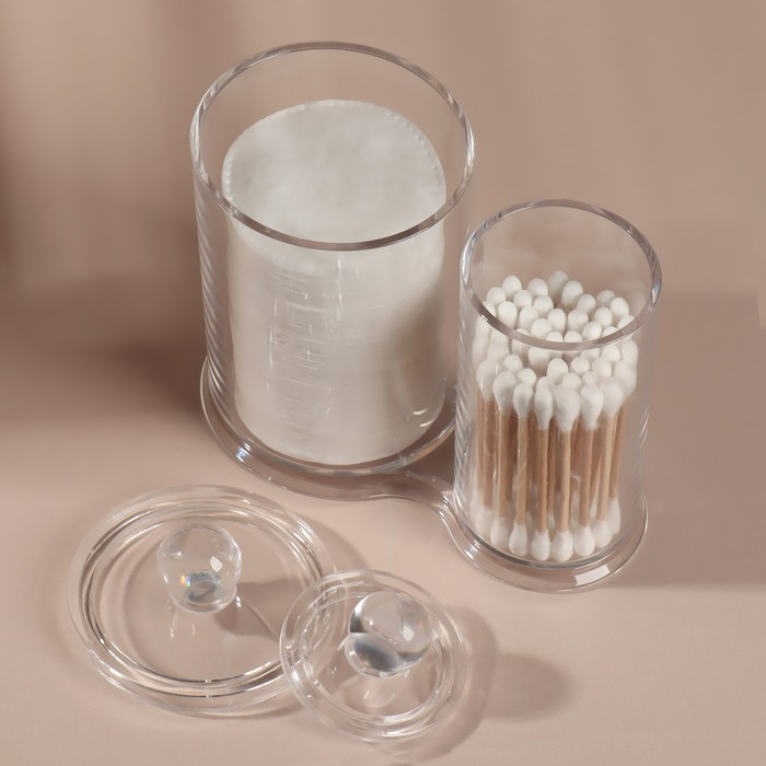 Органайзер для хранения ватных палочек и дисков, с крышкой, 2 секции, 12,5 × 7,3 × 13,5 см, в картонной коробке, цвет прозрачный