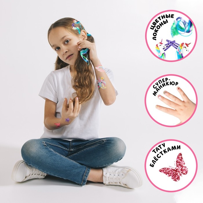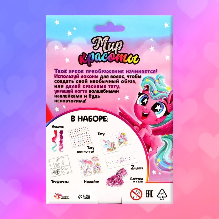Набор для творчества «Мир красоты», более 20 тату, с цветными локонами, с трафаретами, 5+
