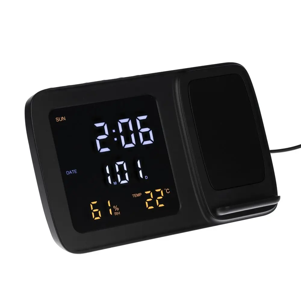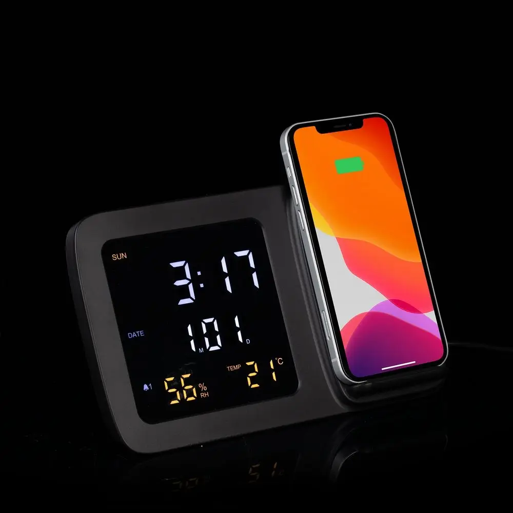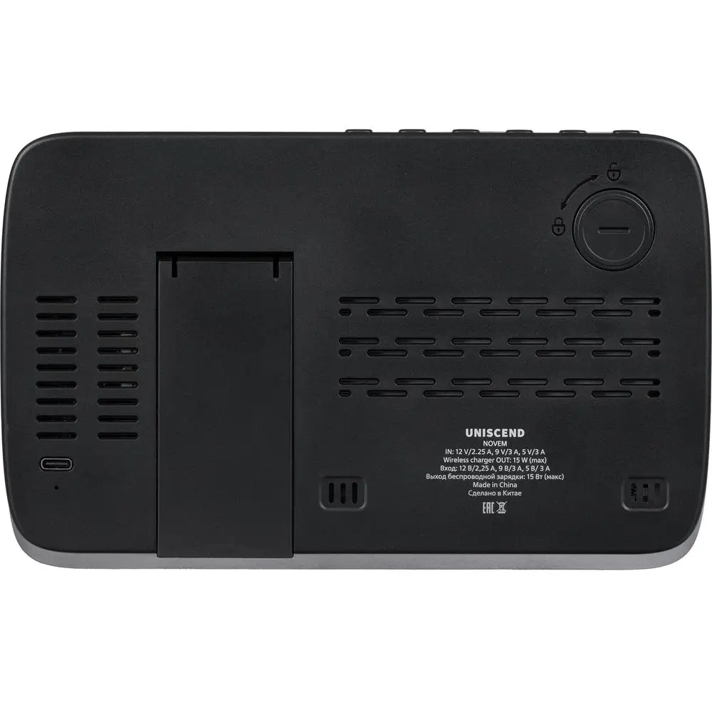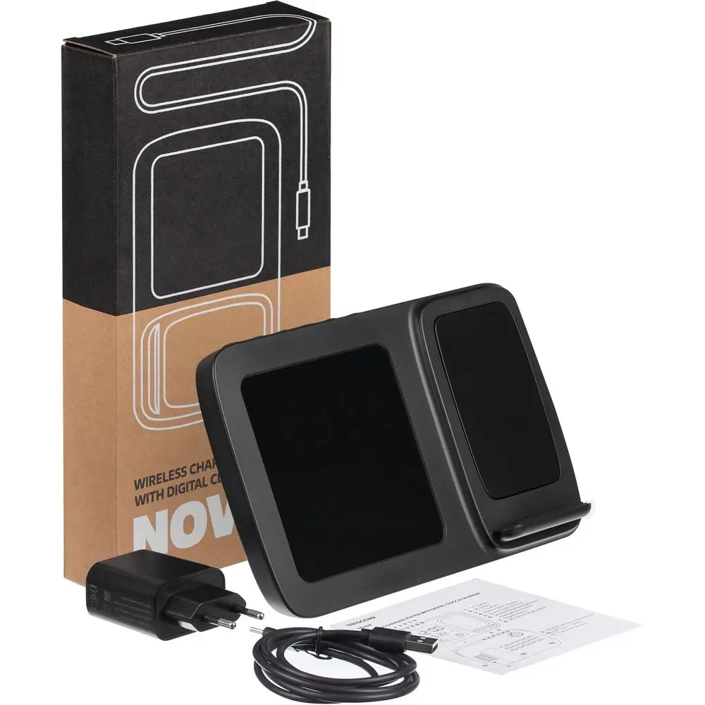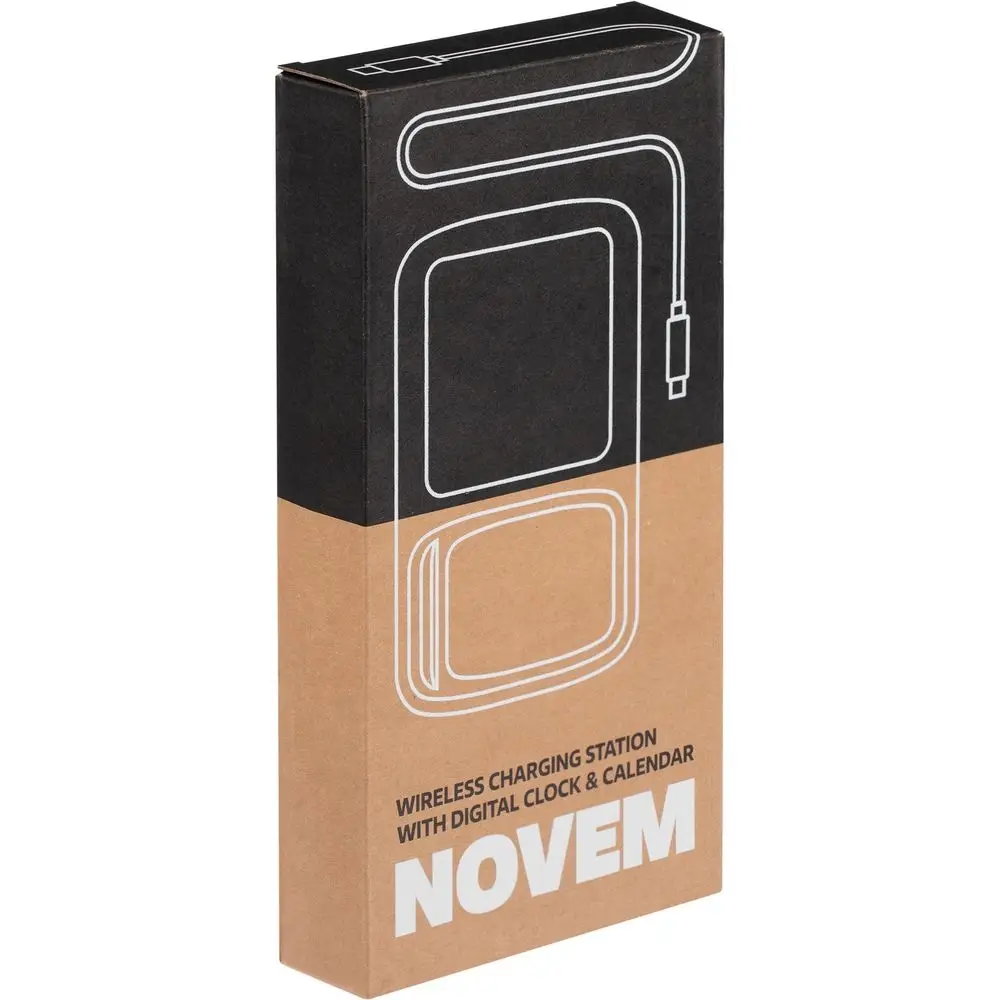 Станция беспроводной зарядки с часами и календарем и подсветкой лого Novem, черная
